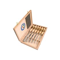 Learn more »Two Cherries 500-1561 Review: Two Cherries 500-1561 6-Piece Chisel Set in Wood Box. These are a very fine set of chisels. The handle looks a little funky until you start handling them. Wow! I added a micro edge and found the blades are ground almost perfect. I am very impressed with these.1 of 1 . Read more »